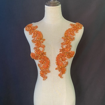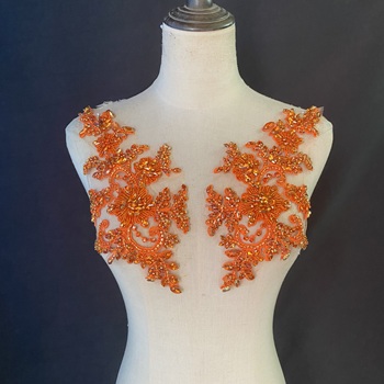 Encrusted Beads Crystal Sew on Applique Patch in orange
