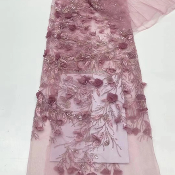 elegant flower design 3 D effection haute couture and wedding dress fabric 2023