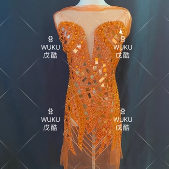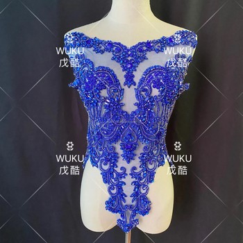 Wuku 2022 Hand Make Bling Bling Whole Piece Dress Applique in Blue