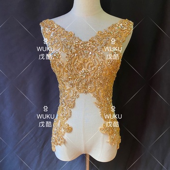 Wuku hand make top piece body cover decorative lace applique in champagne gold