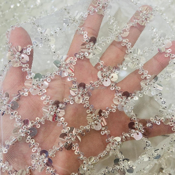 10 Yards MOQ in Stock Lace Encrusted Beads Fabric