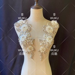 Pair Lace Wedding Dress Crystal Encrusted Beads Wuku 2018 Patch