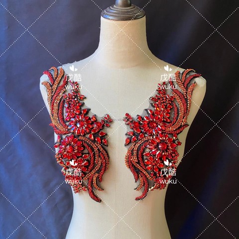 In Pair Wuku Wedding Dress Crystal Lace Applique Patch in Red